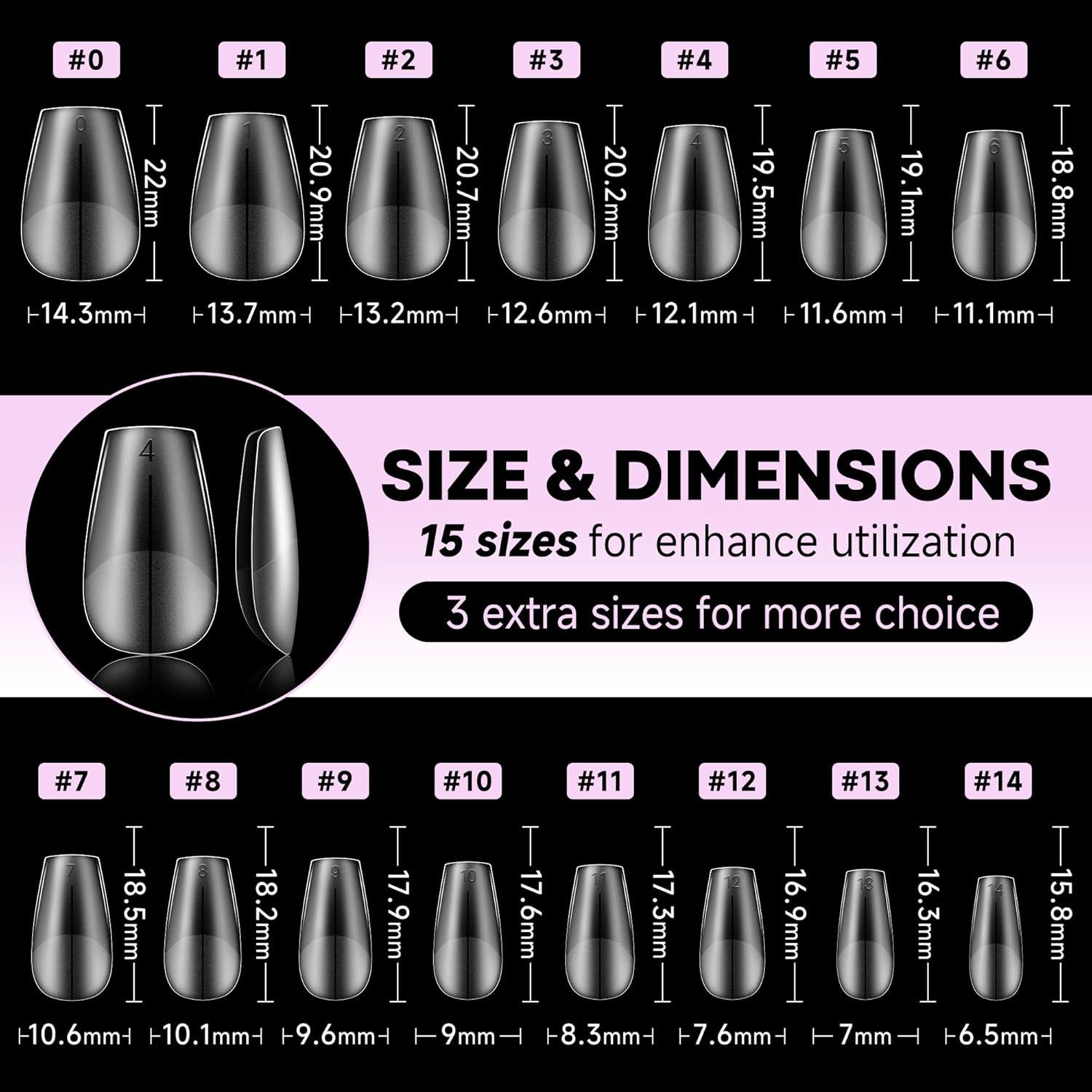 🌠15 Different Sizes: These Short Coffin false nails with size number on the top of the tips can easy pick proper tips for your nail. We also include 3 extra sizes at no additional cost, giving you more options to fit unique nail beds.