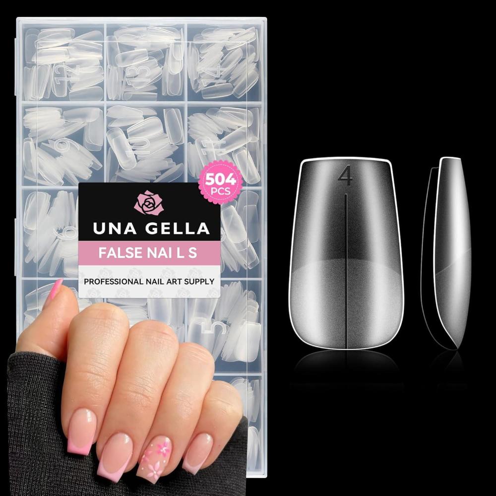 UNA GELLA Short Coffin Gel Nails Tip Pre-shaped Surface 504Pcs Press on Fake Nails Matte Full Cover Acrylic Gel False Nail for Nail Extension DIY Nail Salon 15Sizes Soft Gelly Tips(Short Coffin)