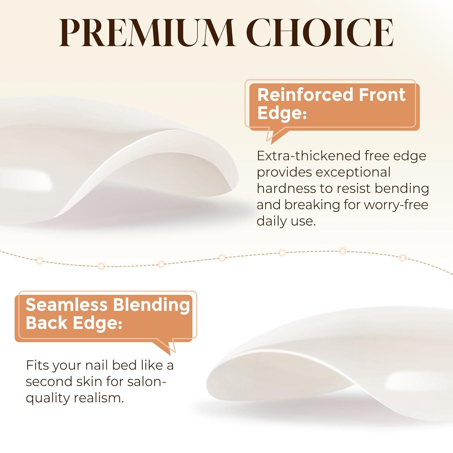 Experience a Natural Feel: Crafted from a flexible soft gel material, these press-on nails feel incredibly natural. They apply with zero pressure on your nail beds and feature a gentle flex with a seamless cuticle line for a perfect, undetectable fit.