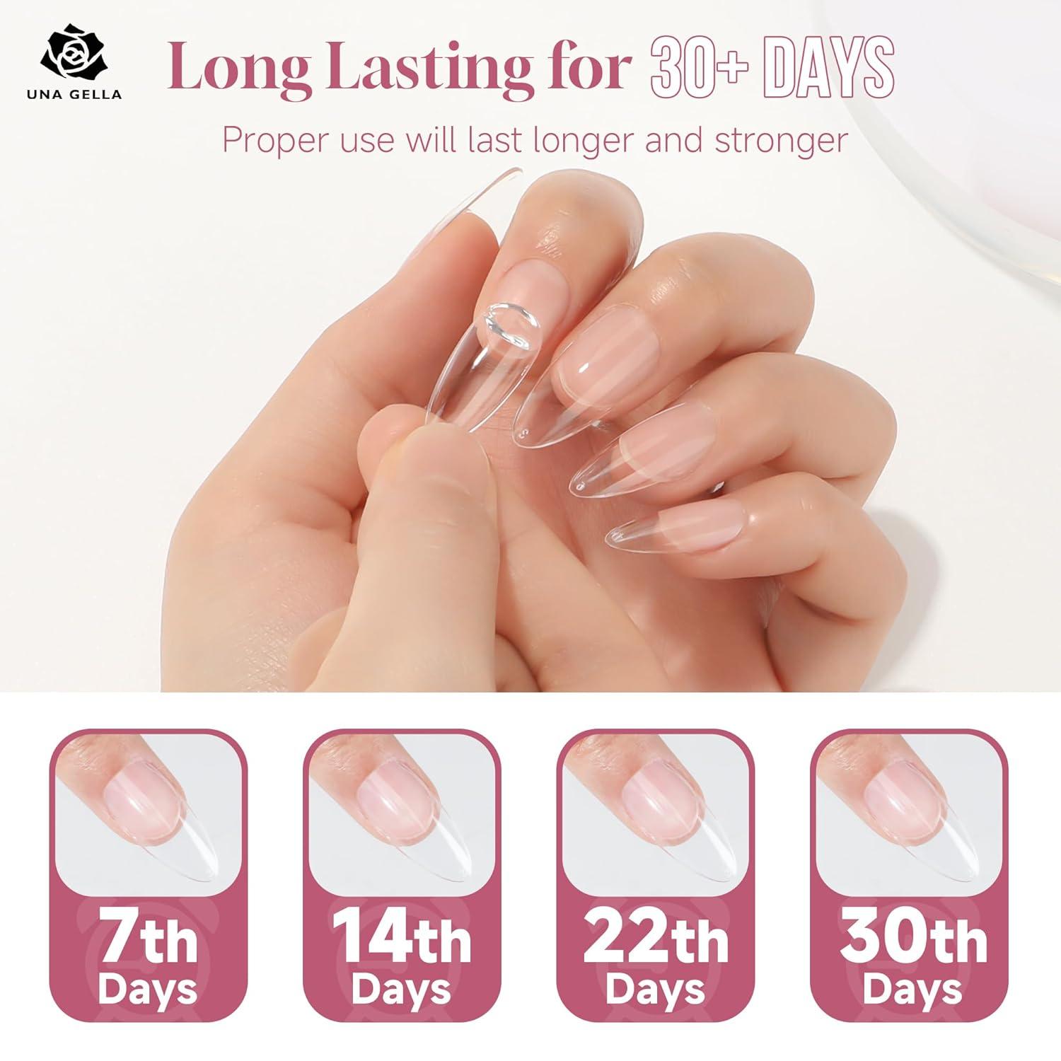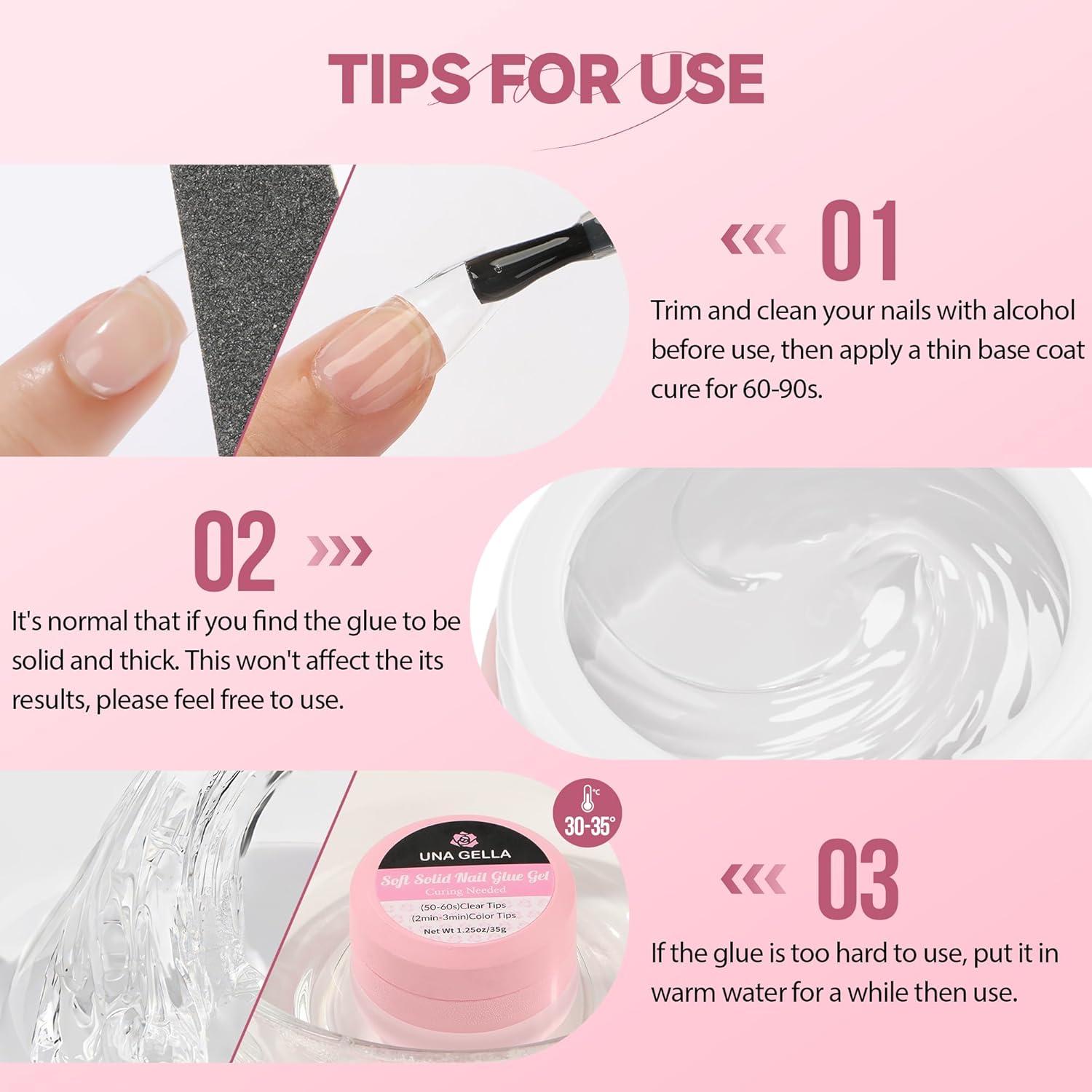 ✨Solid Glue Gel for Nails–Our UNA GELLA clear solid nail glue gel provides a strong adhesive for long-lasting results. It can glue firmly to soft gel nail tips lasting for 30+ days. Keep the nails from poping off easily! A safe and long-lasting guarantee for you, protects the nail from damage with recycle use.