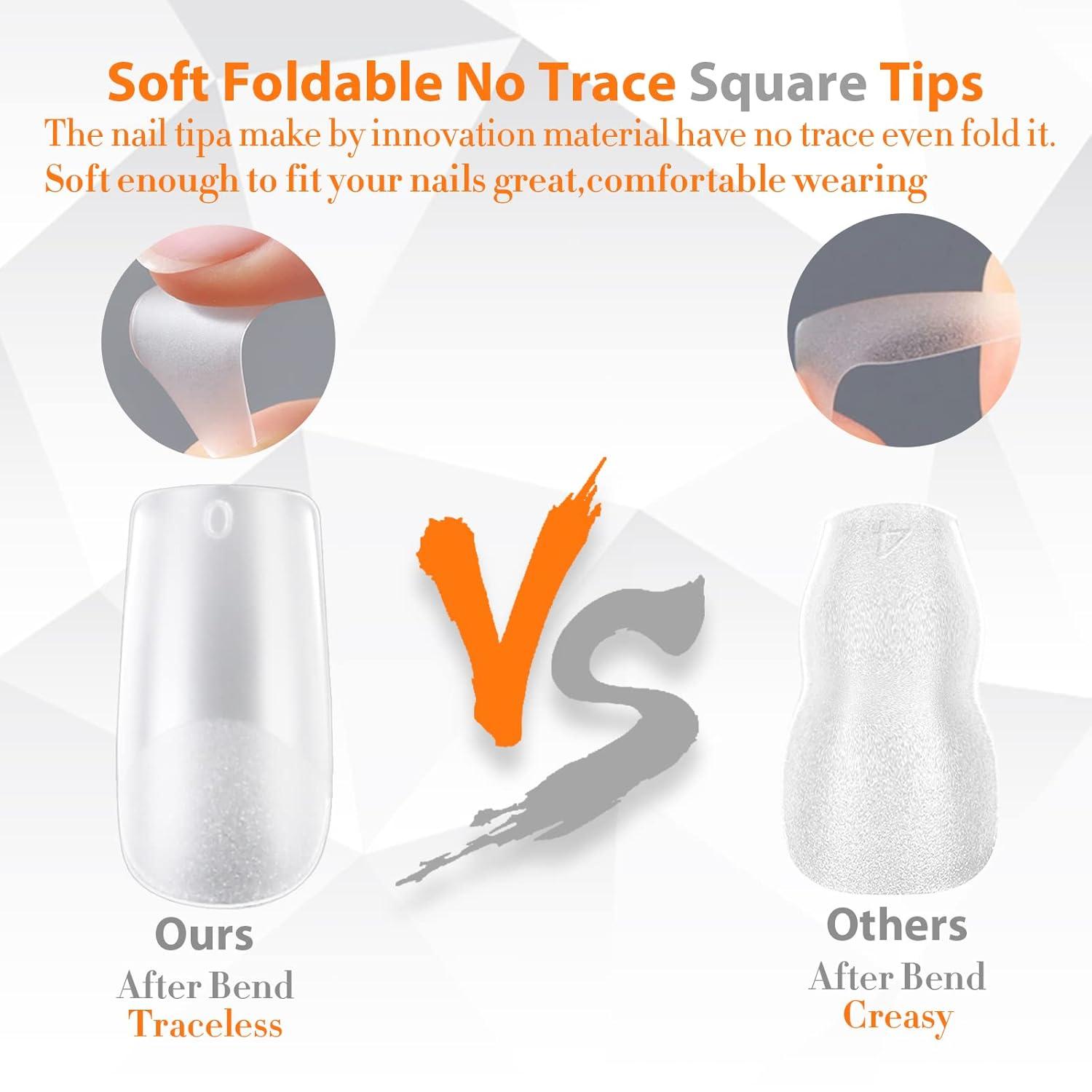 🌟【New X-Soft Nail Tips】Crafted from premium soft gel, these X-Soft square gel nails are twice as thick as regular tips, delivering exceptional strength and flexibility. The false nails bend without creasing, resist breakage, and ensure a flawless, long-lasting wear of 28+ days.