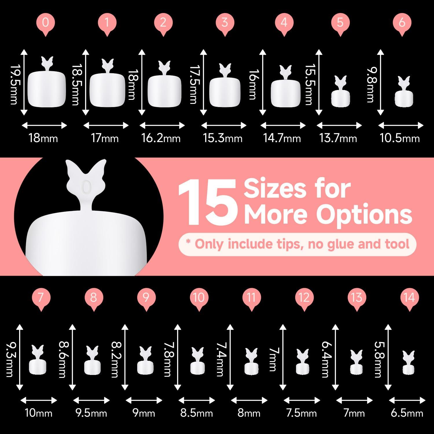 💗15 Sizes for a Perfect Fit: These toenail press ons Includes a full range of sizes from large to small, designed to fit most toe shapes without trimming. Comes with a butterfly handle and a beautifully designed storage box to keep the tips well-organized.Tips–No tools and accessories are included