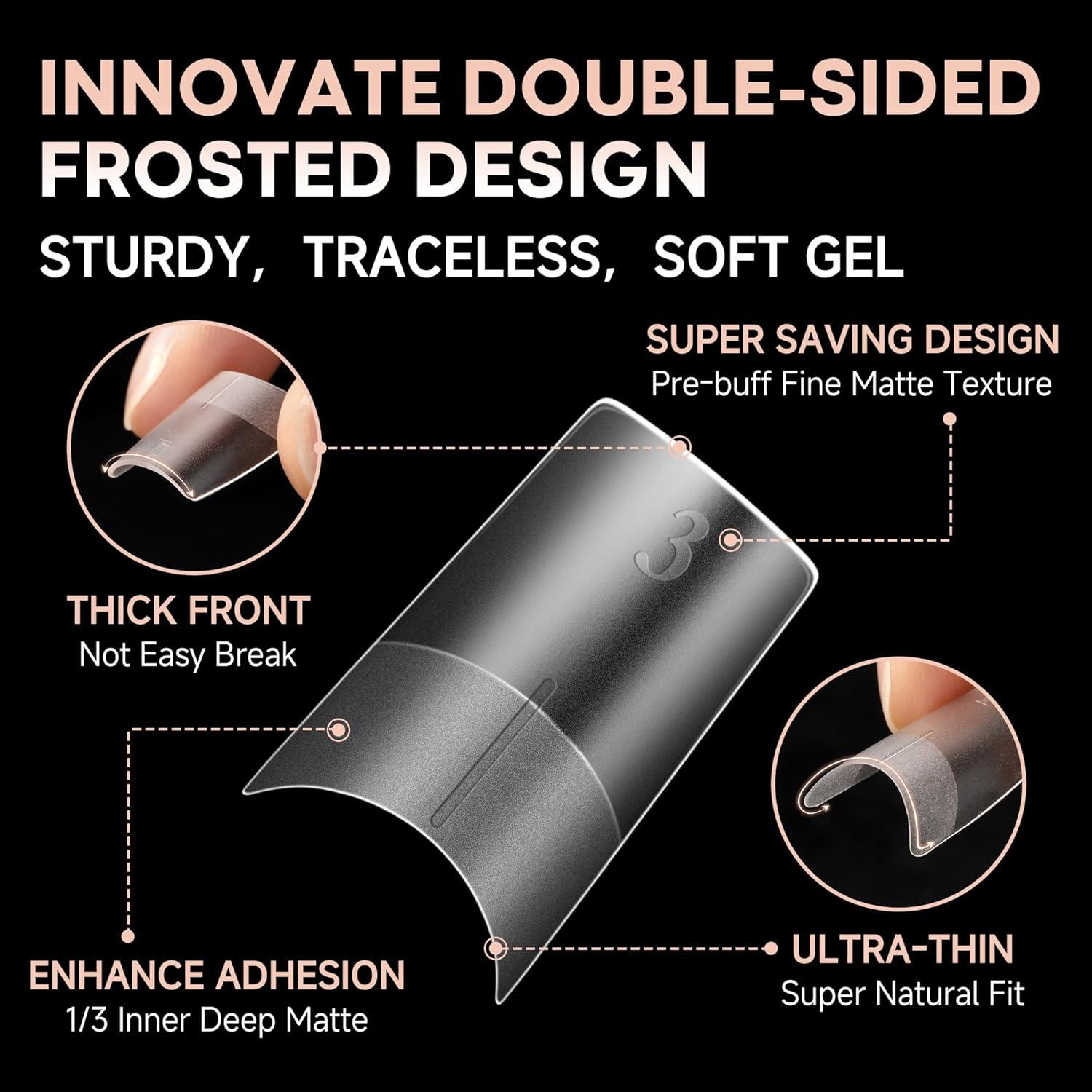 ❤️Traceless Long Square Nail Tips: The extra long gel nail tips square full cover with its clear soft gel material makes no trace even bend, you can more easily press, trim, paint to make your dream nails shape. Let you easily experience salon-level nail art at home! No easy peeling off or breaking.