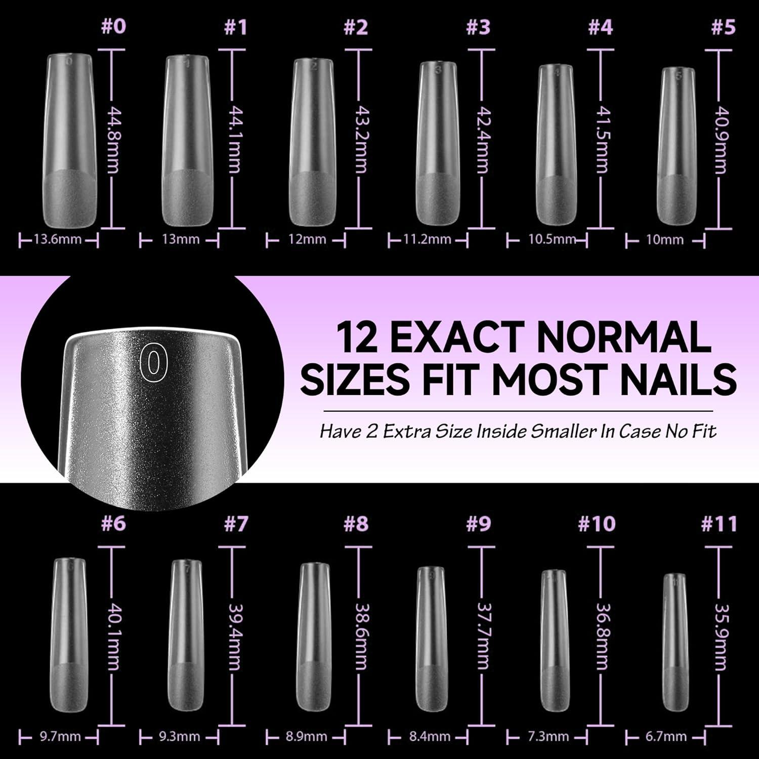 ❤️216Pcs&12 Sizes Ultra Fit: You will receice 216pcs square fake nails with 12 sizes, pre-number nail size can easy find proper tips fit for your nails quickly. With 2 extra size can suit wider or narrow nail bed. If you have any questions about our fake nails, please let us know, we will solve it for you.