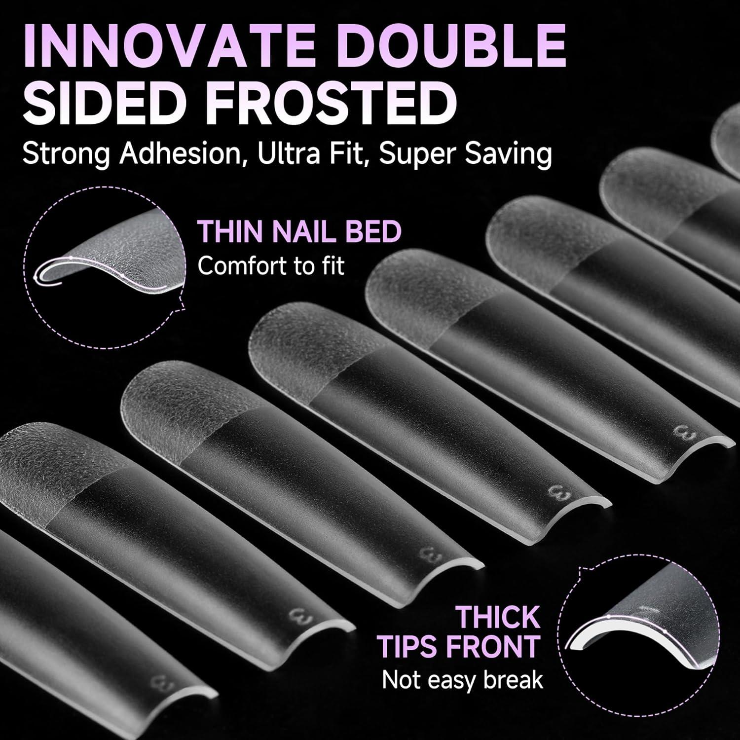 ❤️Traceless Long Square Nail Tips: The extra long gel nail tips square full cover with its clear soft gel material makes no trace even bend, you can more easily press, trim, paint to make your dream nails shape. Let you easily experience salon-level nail art at home! No easy peeling off or breaking.